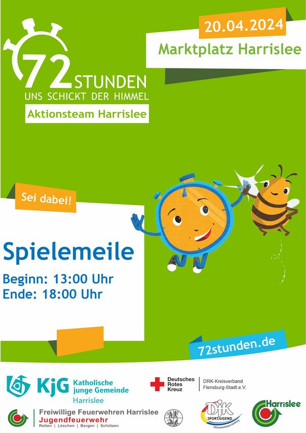 Am Samstag, den 20.04.2024 findet zusätzlich auf dem Marktplatz in Harrislee in der Zeit von 13-18 Uhr eine Spielemeile statt, bei der ein buntes Programm geboten wird.