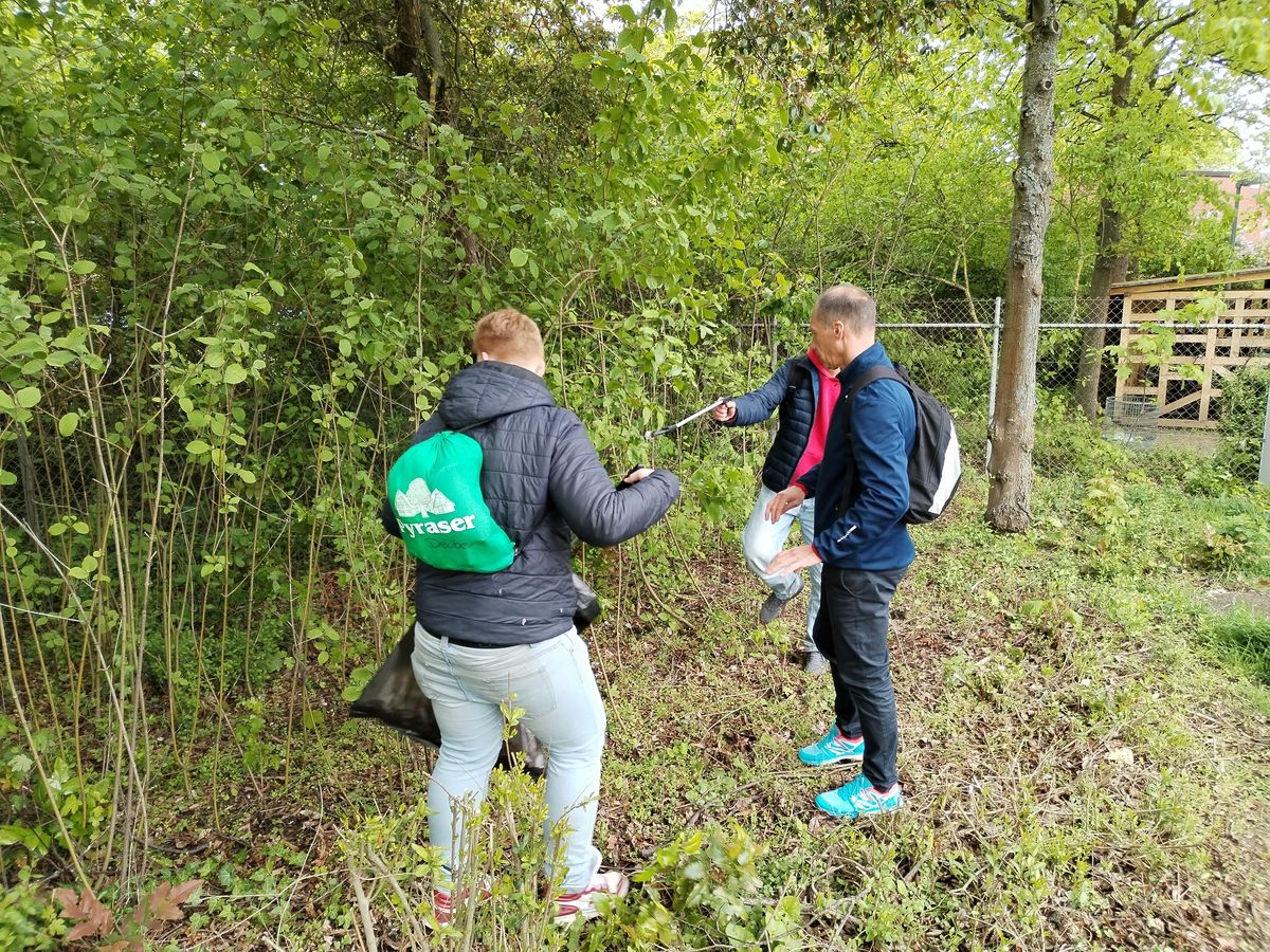 Auf dem Weg zum Spielplatz gibt es auch schon genügend Müll. Der wird natürlich auch gleich aufgesammelt.