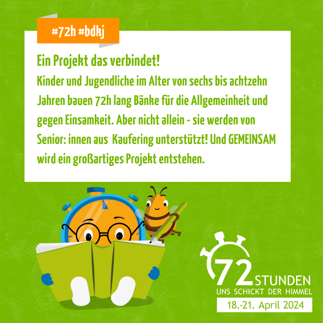 Während des Projekts werden sogenannte Ratschbankerl gemeinsam mit Senioren aus Kaufering gebaut. Diese sollen im Ort aufgestellt werden und die Gemeinschaft stärken sowie Einsamkeit abbauen. Des Weiteren werden Renovierungsmaßnahmen am gemeinsamen Gelände der Wasserwacht und den Maltesern Kaufering vorgenommen.