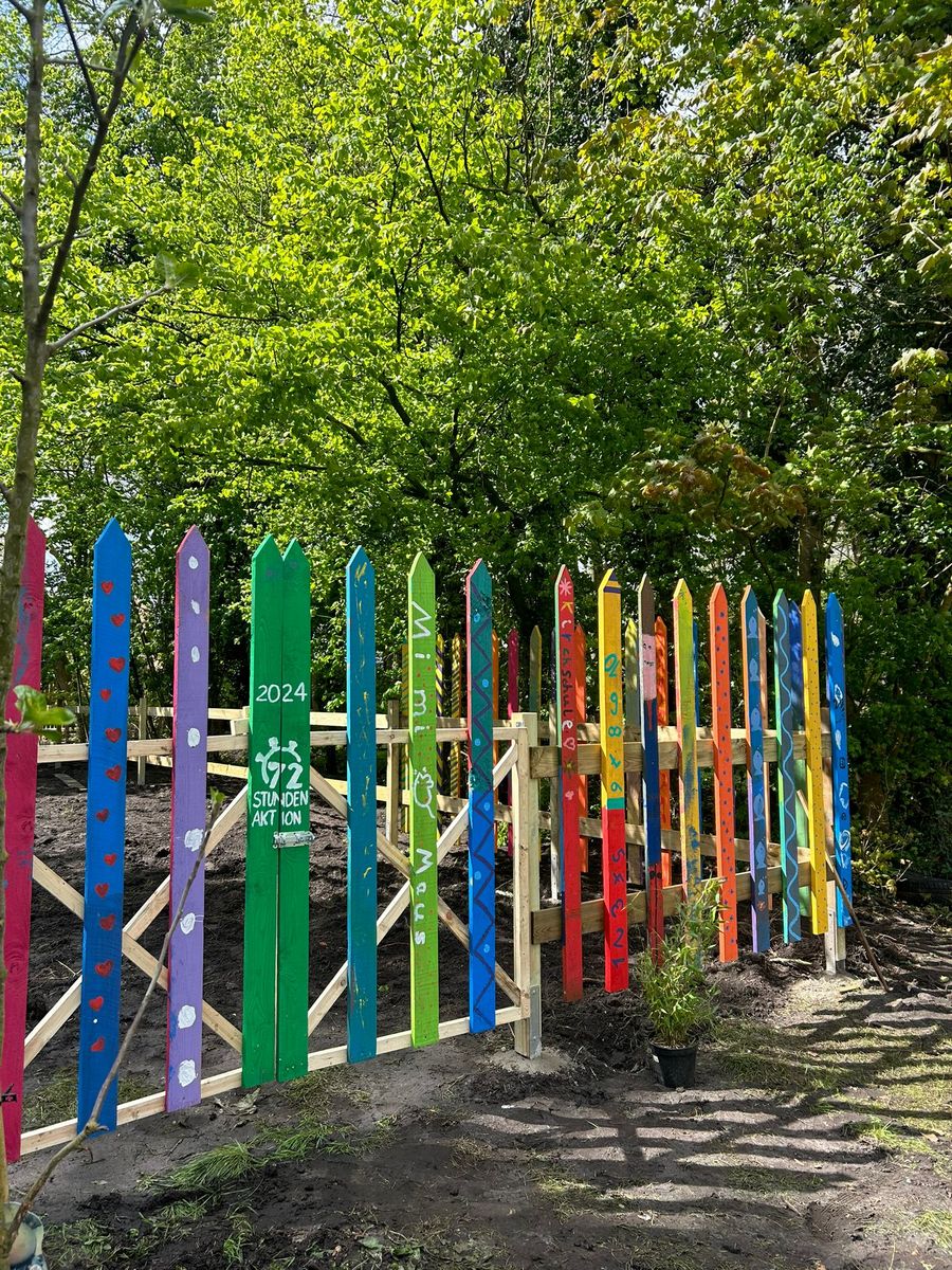 Zum Schutz vor Rehen wird der Schulgarten eingezäunt und eine Drainage zur Be- und Entwässerung gelegt.