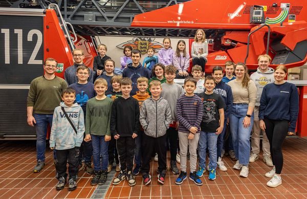 Treffpunkt 15 Uhr, Feuerwache Buchen, die Kinder und Betreuer sind schon hoch motiviert.