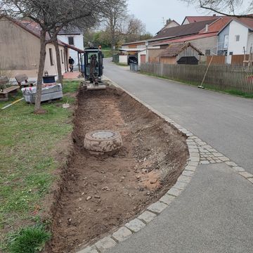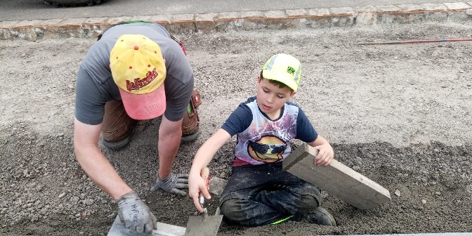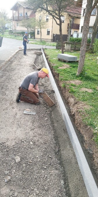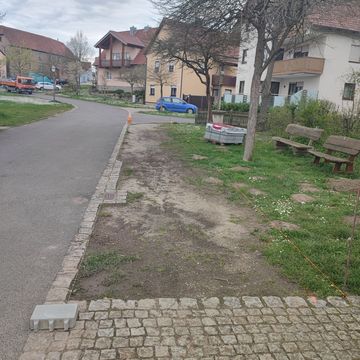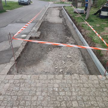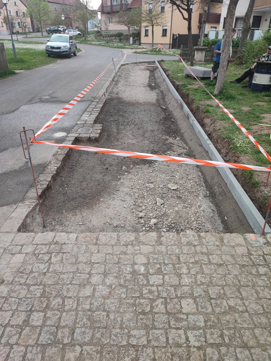 - Bestehenden Parkstreifen mit Pflastersteinen befestigen.