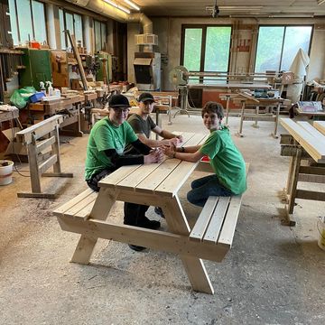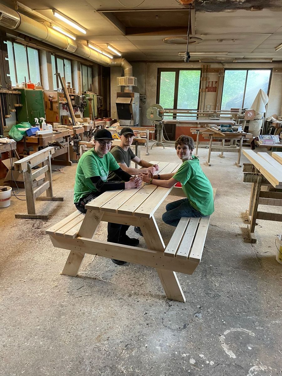 1. Besorgt euch Holz, um damit Tische und Bänke für den Aussichtspunkt im Wald am Stern von Betlehem in Waldbreitbach zu bauen.