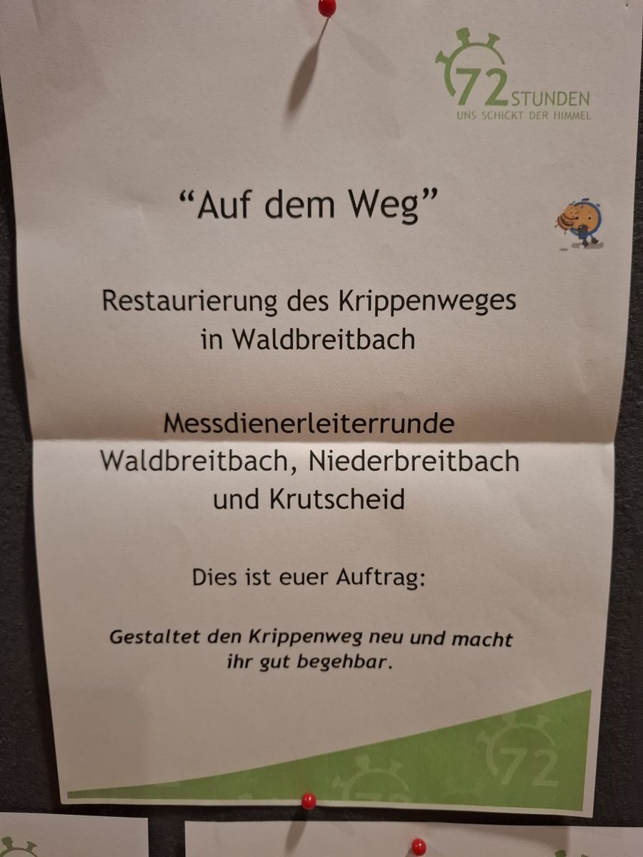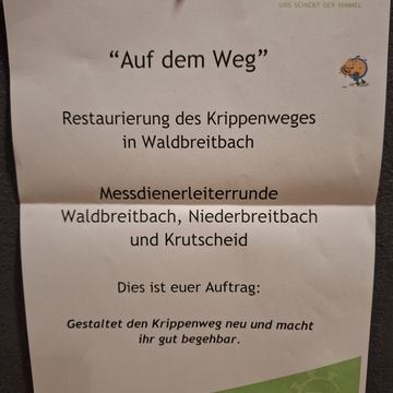 Gestaltet den Krippenweg neu und macht ihr gut begehbar.