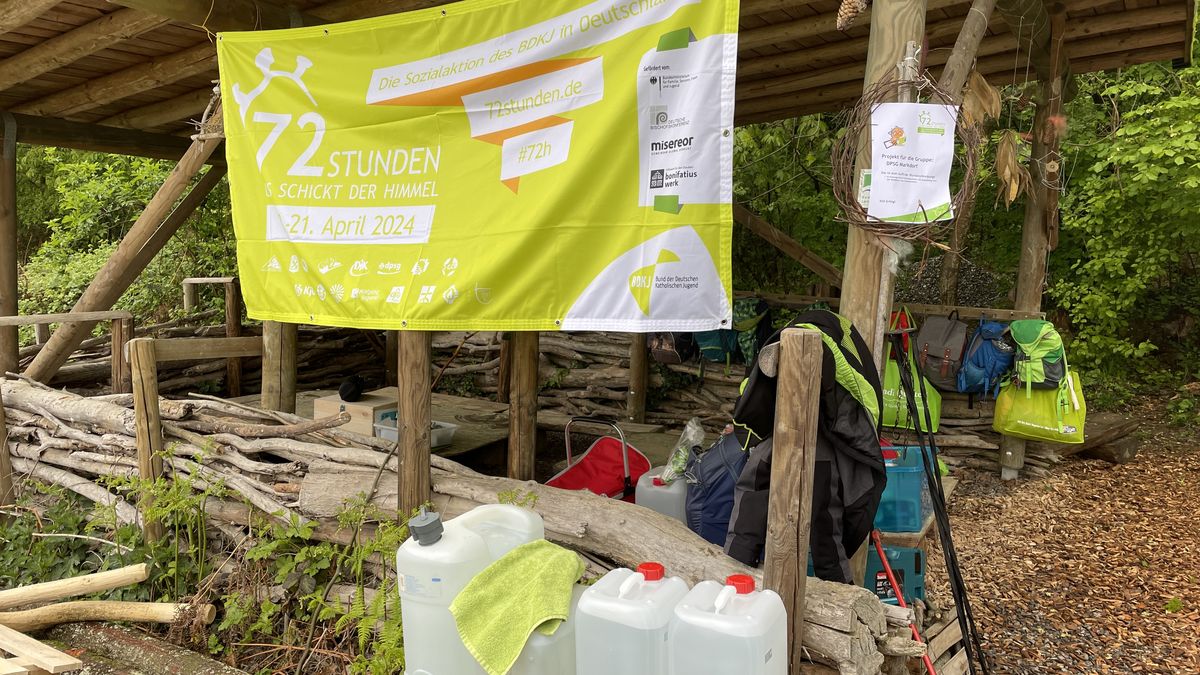 Ab 10:30 Uhr sind wir wieder im Waldkindergarten unterwegs. Und so geht es dann weiter: Wir nutzen die letzten Stunden der 72 Stundenaktion für den Feinschliff, damit dann alles blitzt und blinkt für die Übergabe. Ab ca. 16:30 Uhr beginnt der Abschluss und um 17:07 Uhr übergeben wir das Häuschen und die Waldtier offiziell an die Kindergärten. Wer vorbeischauen möchte, ist herzlich willkommen. Bitte einen Becher mitbringen. eure Pfadis