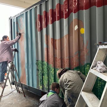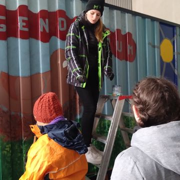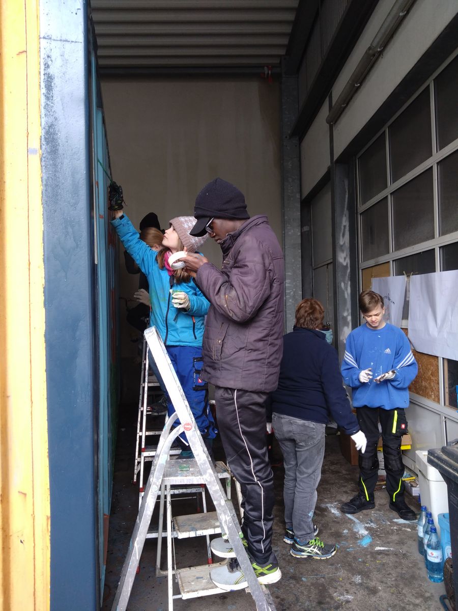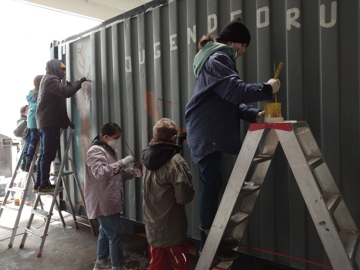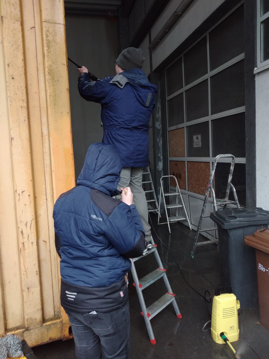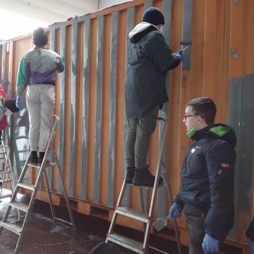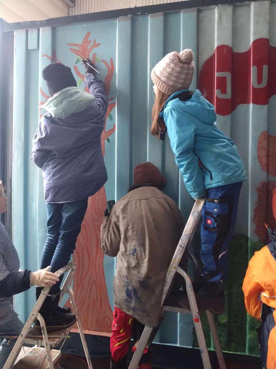 Der Container muss geschliffen, lackiert und bemalt werden.