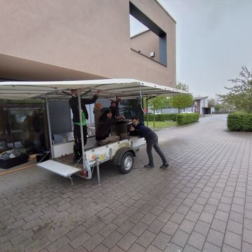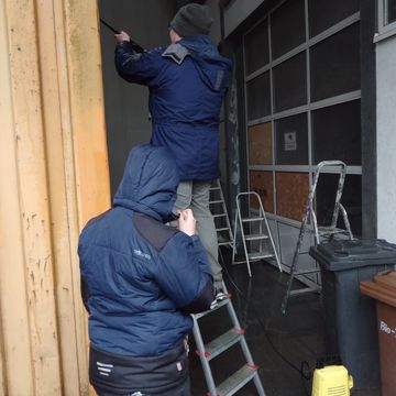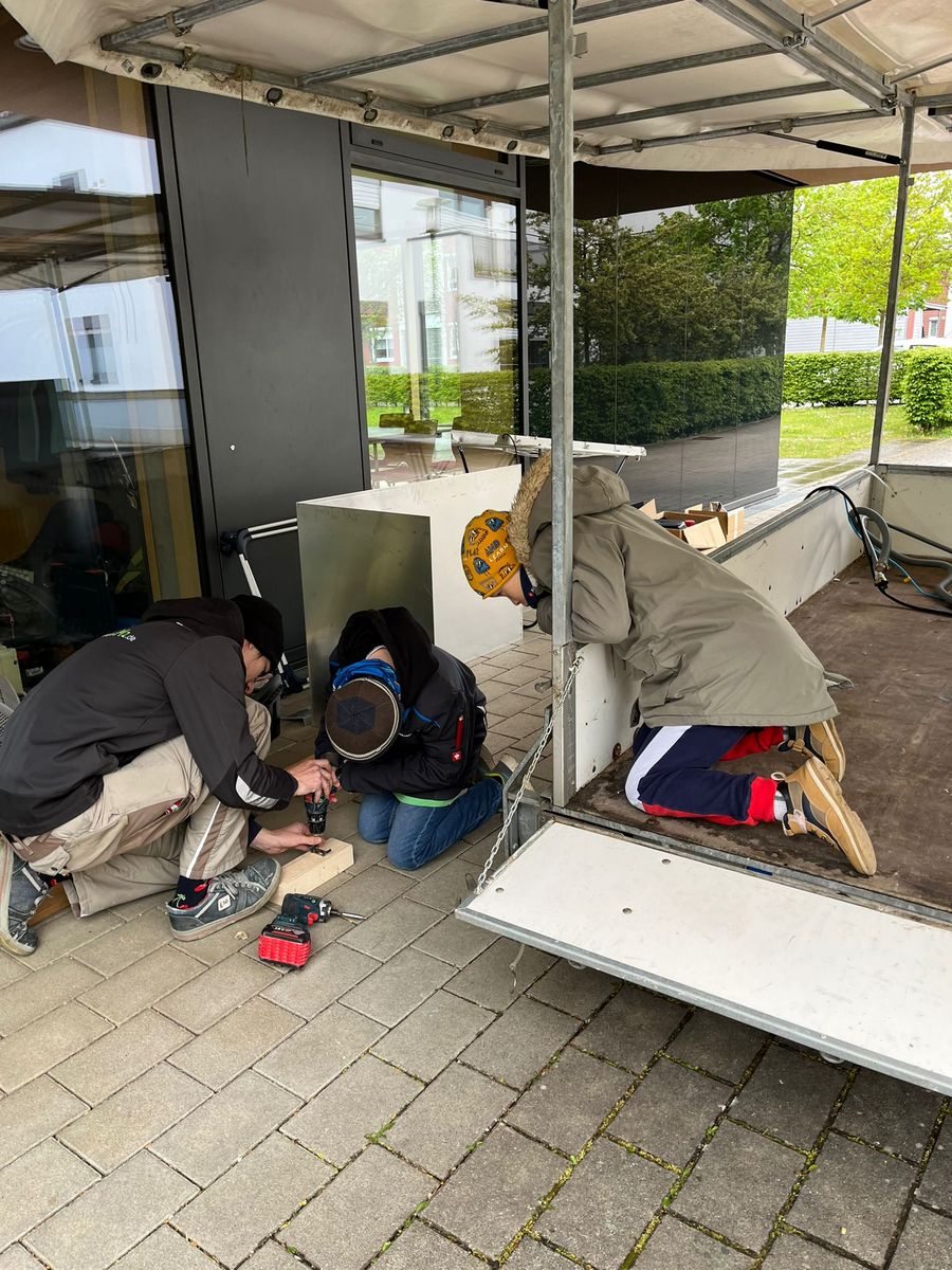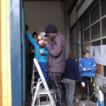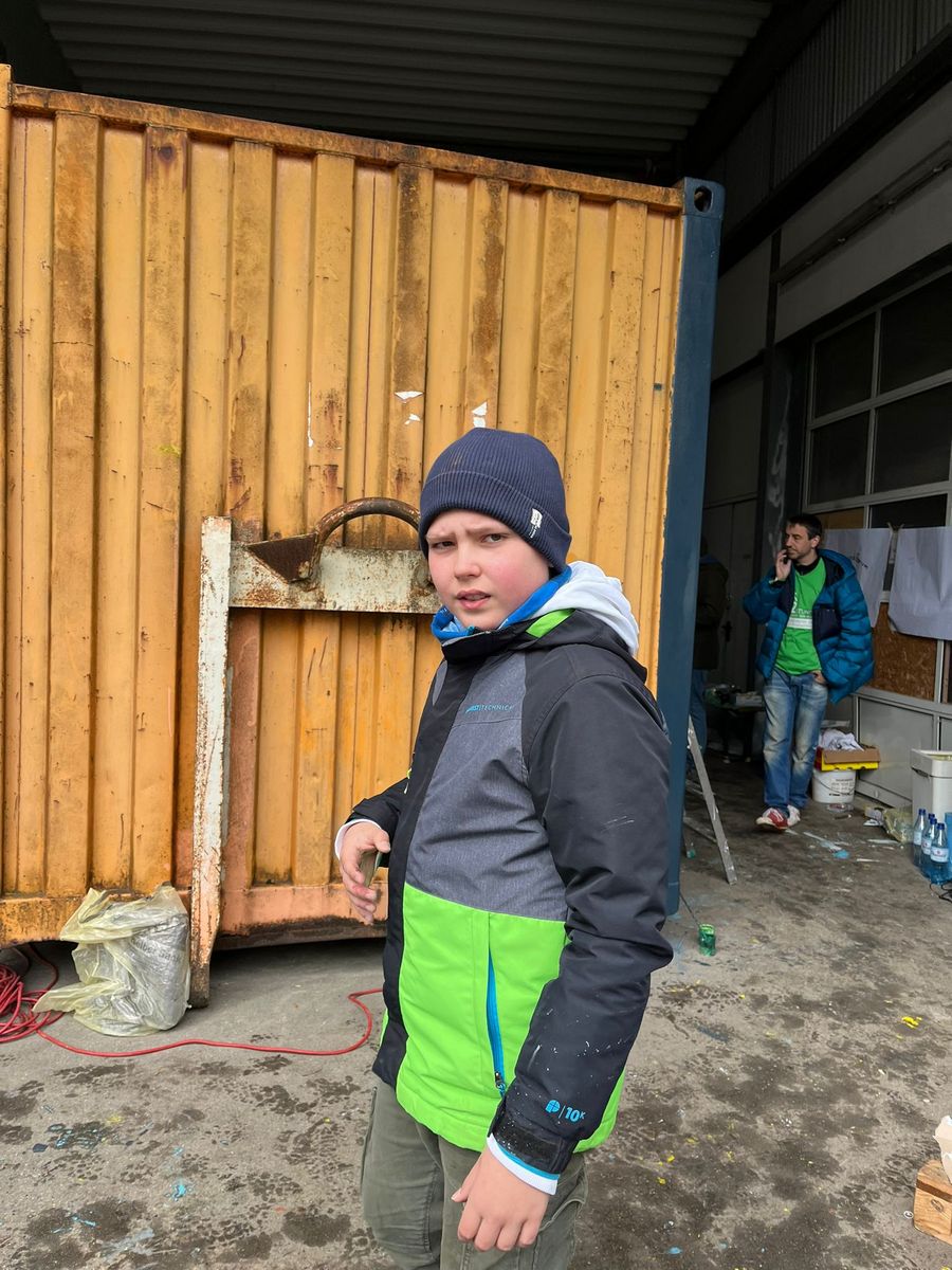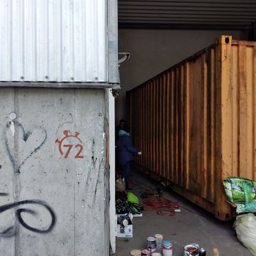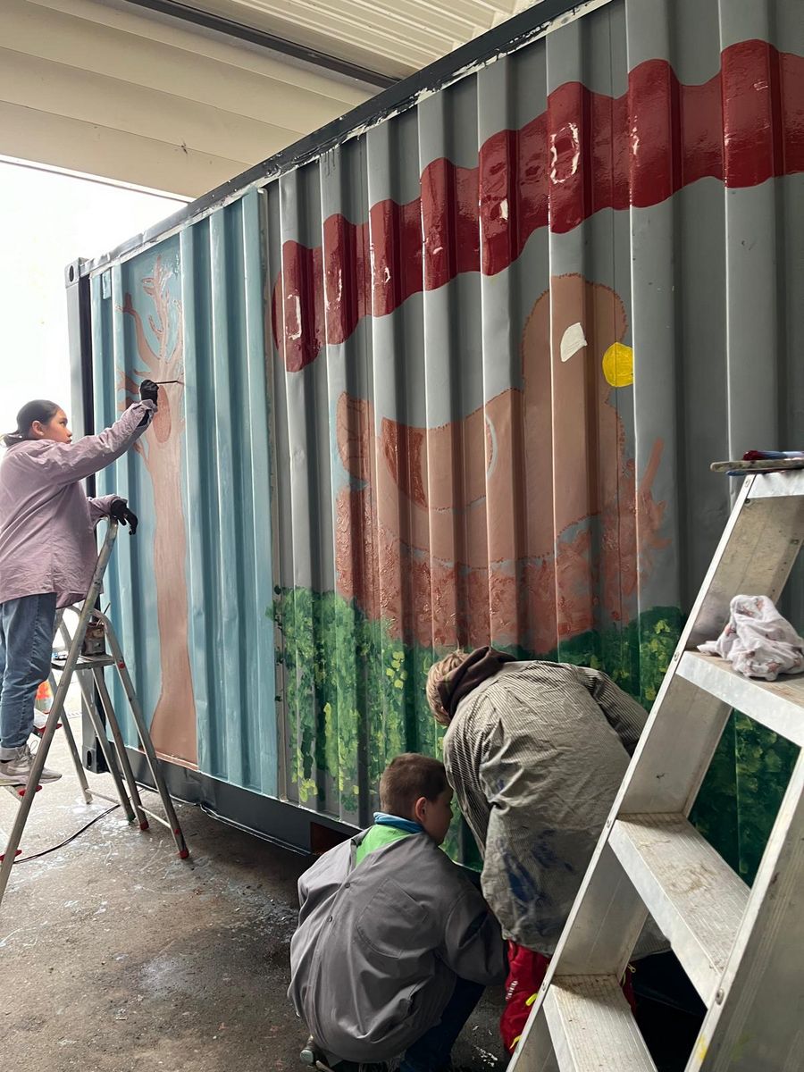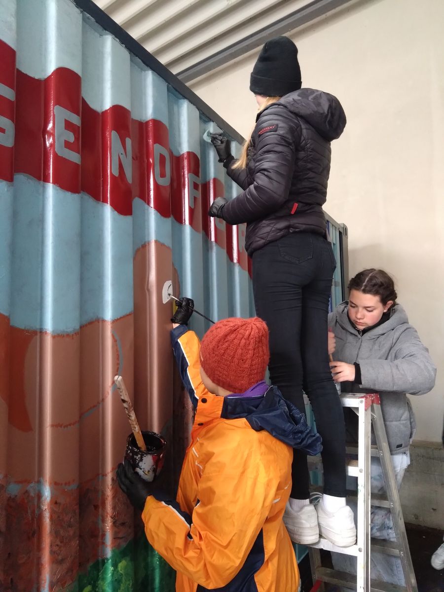 Der Container muss geschliffen, lackiert und bemalt werden.