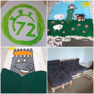 Der zukünftige Raum für die MessdienerInnen St. Magnus Niedermarsberg muss zunächst entrümpelt werden. Es folgt die Reinigung. Danach geht es an die Inneneinrichtung. Es wird eine Wand mit einem Maltuch gestaltet. Das Bild wird noch besprochen. Regale werden wiederverwertet. Außerdem sollen Sitz- und Verweilmöglichkeiten geschaffen werden und/oder Platz für Spiel und Kreativität. Hierfür können die entrümpelten Sachen durchgesehen werden bzw. Neues angeschafft werden. Ein Palettensofa wird aufgebaut.