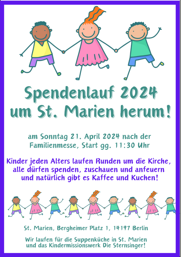 Spendenlauf zugunsten der Suppenküche und des Kindermissionswerkes am 21. April 11-13 Uhr.