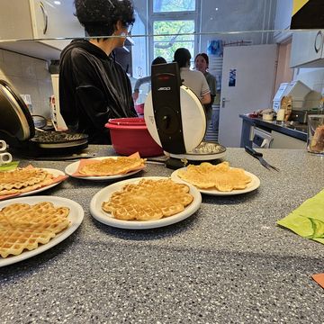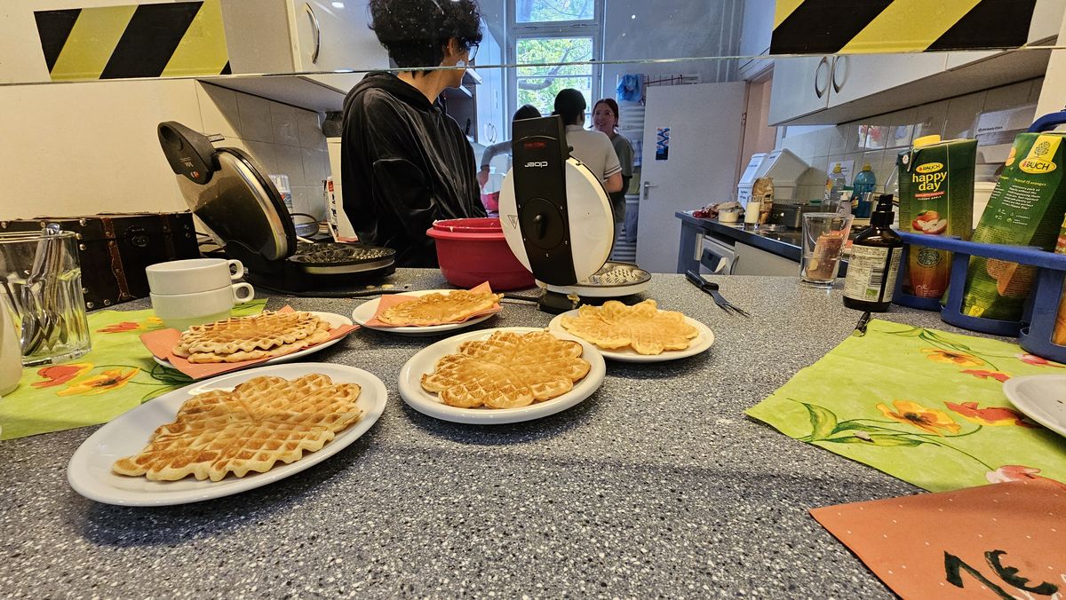 Für alle gibt es Waffeln zur Stärkung. Guten Appetit!