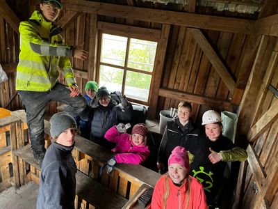 Trotz des schlechten Wetters haben einige am Freitag schon angefangen die Hütte nach und nach zu schleifen. Die anderen waren damit beschäftigt die Hütte innendrin sauber zu machen. Nach dem Sauber machen haben sie es drinnen auch noch gestrichen. Es wurde sehr viel gewerkelt und man kann schon jetzt einen großen Unterschied zu vorher erkennen.