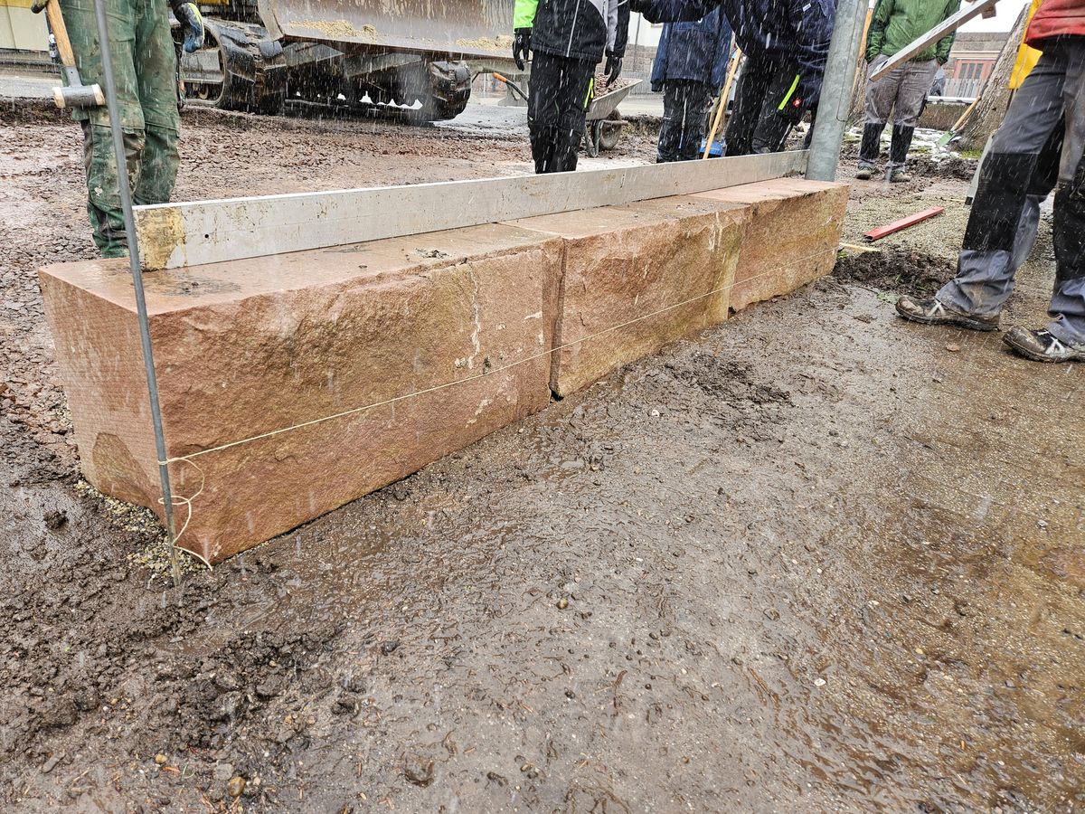 Die Firma Vividus hilft uns beim setzen von Sandsteinen für unseren geplanten Sandkasten, zwei Mann investieren einige Stunden ihrer Zeit in unser Projekt!