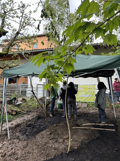 Heute beginnt unserer Tag mit besserem Wetter. Wir sind nun am Befüllen des Barfußweges.