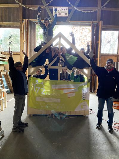 Unsere Spielhütte steht - wenn auch vorerst in der Zimmerei. Die letzten Arbeiten werden wir in den nächsten Tagen erfolgen.