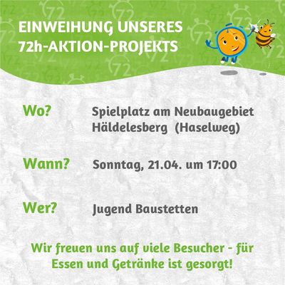 Für Essen und Trinken und gute Unterhaltung ist gesorgt. Kommt um 17 Uhr zum Spielplatz im Häldelesberg (Haselweg) in Baustetten und bringt bei schlechtem Wetter Sonnenschein und einen Regenschirm mit.
