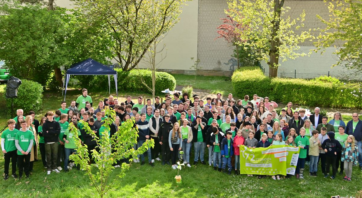 Bei extra bestelltem Sonnenschein trafen sich die Aktionsgruppen aus der Mainlinie. Gemeinsam eröffneten wir die 72-Stunden-Aktion. Nach Gruppenfotos und untermalt von stimmungsvoller Musik von Elena und Tobi fanden die Begrüßung durch Regionaljugendreferent Roland Franz, die Rede unseres Schirmherrn, 1. Kreisbeigeordneter Carsten Müller und die Vorstellung der Gruppen und Aktionsgedanken durch den Ko-Kreis ihren Platz. Zunächst mussten die Gruppen ihre Arbeitsaufträge finden und zusammen puzzlen. Nach dem Segensgebet und dem Song "people" wurden dann die Arbeitsaufträge von den Paten um 17.07 Uhr übergeben. Und kurz darauf war es auch schon leer im Garten des KJB, denn alle waren begeistert an ihre Veranstaltungsorte geeilt.