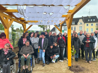 Der finale Tag ist geschafft. Nach den letzten Arbeiten wie dem Einspannen der Sonnensegel und der Fertigstellung unseres Messdiener-Aktionsschildes durften wir gemeinsamen mit den Bewohnern der Lebenshilfe Trier den neuen Außenbereich und das Pflegebad eröffnen. Ein besonderer Dank geht an Jan Lehmann für die schöne Einsegnung unseres Projekts. Wir wünschen den Bewohnern und Mitarbeitern der Wohngruppe viel Spaß mit der Pergola, den Hochbeeten und dem Bad und bedanken uns für die tolle Zusammenarbeit und das Abschlussgeschenk.