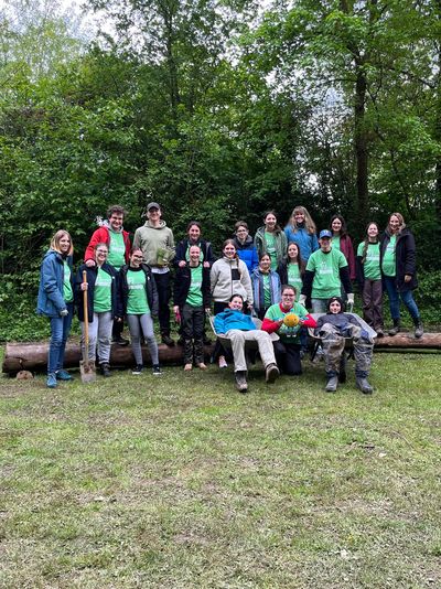 Um kurz vor 10 Uhr kommt das Team Weller und bringt zwei Bäume mit. Sie helfen uns beim Bäume pflanzen und richtig anbinden - vielen Dank für die Spende und die großartige tatkräftige Unterstützung!