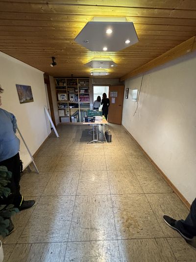 Gestern haben wir den Schrank abgebaut und Leuchten und Schranktüren mit Tafellack lackiert. Heute haben wir dann die Böden Komplett abgeklebt und die Decke abgeschliffen, damit wir die Decke Lasieren und die Wände streichen können. Außerdem haben wir unsere Einkäufe von Obi und die ganzen Paletten für die Sofas reingetragen.
