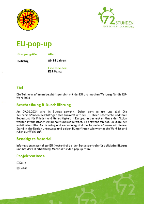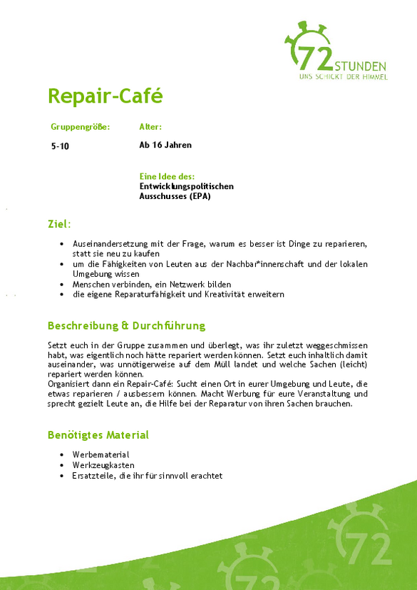 Außerdem werdet ihr auch Material für die Auftaktveranstaltung und ein paar Ideen für eure Programmgestaltung während der 72 Stunden darin finden.