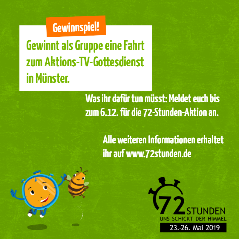 Unter allen Gruppen verlosen wir eine Gewinnergruppe, von denen wir ca. 15 Teilnehmende mit nach Münster zum Aktions-TV-Gottesdienst schicken.